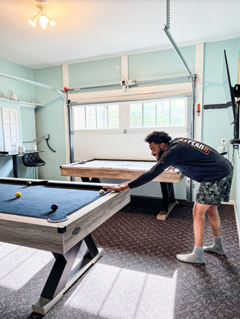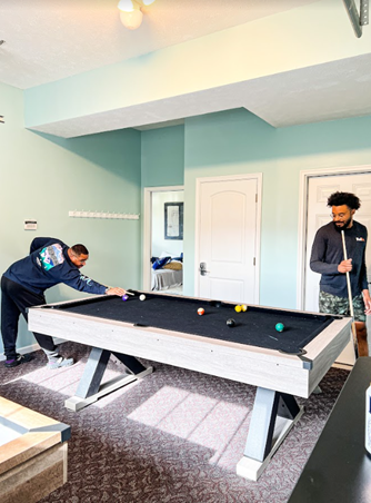 Game Room Area: Our kids and the hubbies spent the majority of their time experiencing the fully equipped game room. It consists of a pool table, air hockey table, and an ultramodern integrated gaming system smart TV. This room has everything you need for a thrilling gaming experience. The TV is equipped with a complimentary Amazon Luna and Netflix subscription. There was no need to sign into anything on any of the tv in the house.