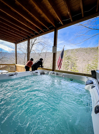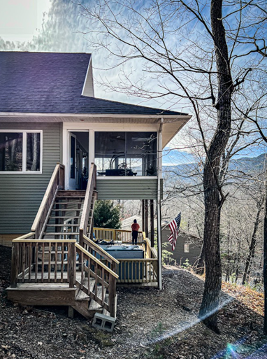 The Outdoor Deck and Hot Tub at the Mountain Escape Property