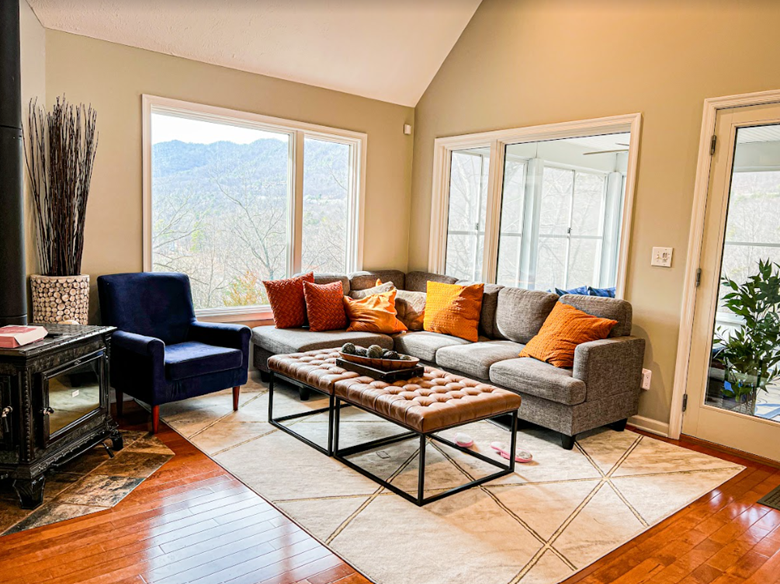 The main floor living room area at Mountain Escape Property near Massanutten Resort