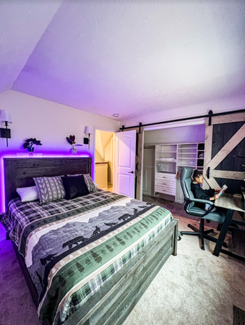 Bedrooms area: Every bedroom in this house is roomy and cozy! Let me start with the lower level bedroom suite, full bathroom, living room area, game room area, and two additional air mattresses, in case you have one or two extra guests. Also, did I mention the lower level has its own outdoor deck entrance and oversized HOT TUB. We enjoy so much time!