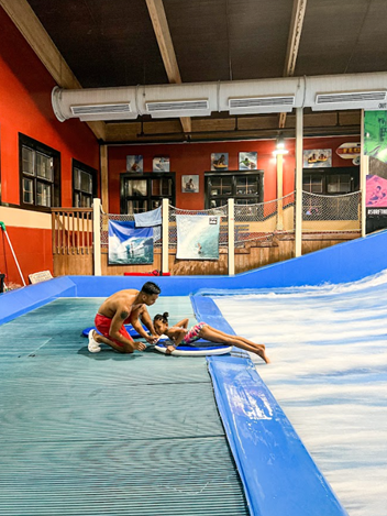 The FlowRider or the Pipeline is an ultramodern wave simulator that uses a triple-jet system to pump an astonishing 48,645 gallons of water per minute, creating an ocean-like wave that you can bodyboard or surf on. It’s the first and largest FlowRider of its kind in the state of Virginia and has been appropriately named “The Pipeline.”