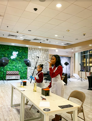 After a few sips of our drinks and some great R&B music, it was time for us to do our photoshoot. Yes, let me tell yall the vibe was right because our photographers were enjoying themselves as much as we were. Mia and I got our photos taken, and then we began experiencing something you only see in movies. The Sip and Develop team walked us through the process of creating our films and photography step by step. The instructions were very easy to follow for me and my 8-year-old.