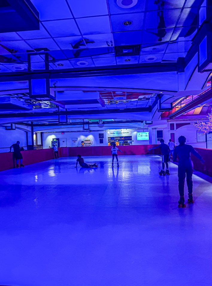 Roller skating offers an exhilarating array of childhood memory-sparking fun, reminiscent of joyful times spent gliding and twirling on wheels. The experience is enhanced by the presence of gleaming disco balls, creating a vibrant and lively atmosphere.