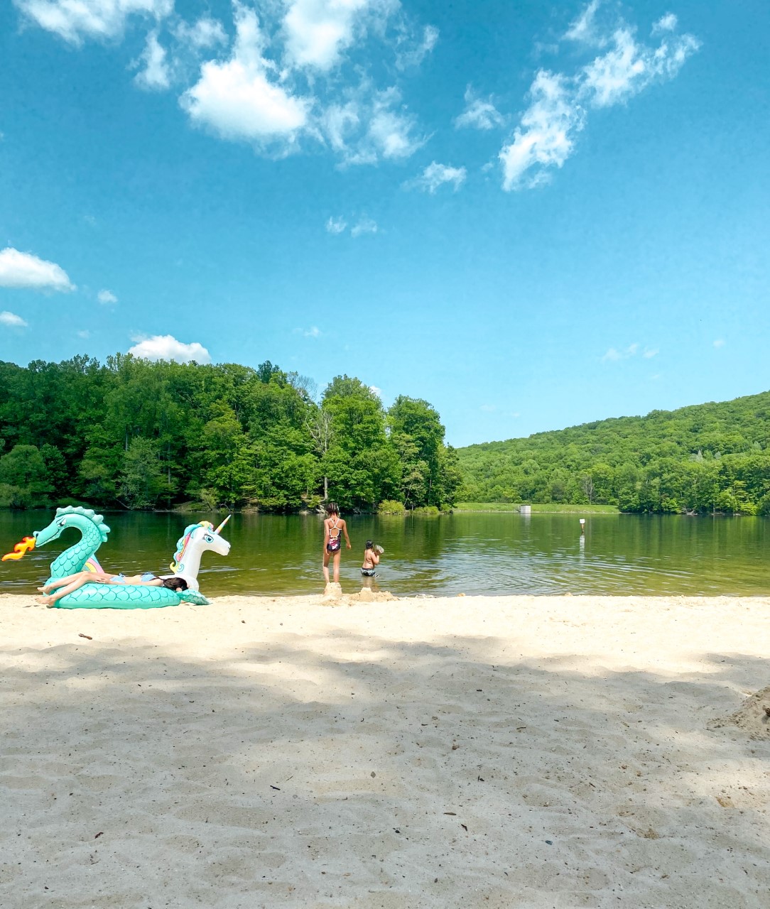 Lake Anna State Park features a clean and beautiful beach where you can swim, play in the sand or just sit by the shore and enjoy the view. Our favorite part about this beach was that they have electrical outlets at the buildings where you can fill your floaties and other inflatables. A great activity for the kids.